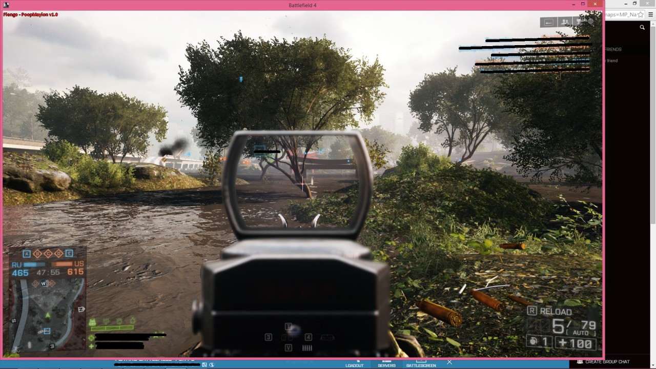 Kategorie: Battlefield 4 Entwickler: Flengo Beschreibung: Quick update to the previous release. Not much new, just complete fixes and updates. For any of the D3D Overlay (Title & Crosshair) Battlefield 4 must be run in Windowed Mode. No Recoil & No Spread work in full-screen mode. All features are automatically on. No Recoil, No Spread, and the Green Crosshair. Screenshots don't contain any of the D3D Overlay since it was run in full-screen mode, but all the features work. Run the hack after the game has loaded /gewd Screenshots: Download: PoopMayion v2.0 |