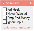 akuma v.1.2 Downloads › Other FPS Games › Grand Theft Auto › Grand Theft Auto V Kategorie: Grand Theft Auto V Entwickler: TG13 Hochgeladen von: System Hinzugefügt am: Mo 28. Nov 2016, 00:47 System: Windows Download (80.32 KB) VirusTotal Ergebnis: 2/55 Download (80.32 KB) Beschreibung Bei Problemen mit einem Hack hilftein Blick in die FAQ! Features:Full Health [KEY: 'U']Never Wanted [KEY: 'I']Drop Ped Money [KEY: 'O']If u select 'Ignore Input' above KEYS are ignored!Usage: - download and unpack GTA5 akuma anywhere u want (*.exe & *.dll need to be in the same directory!) - run GTA5 and wait until u see the menu screen (run GTA5 in windowed mode if u want to see the menu ingame) - run GTA5 akuma - wait until ur ingame - use any featureOnly compitable With GTA5 / Title Update v.1.36Tested on Win10 x64 & Win 8.1 x64Versions:v.1.0 - initial releasev.1.1 - memory bug fix (reported by Phauglin)v.1.2 - recoded base + 'Ignore Input' optionCredits:DarkLinuxz - Ped TableBinaryComplex - Beta Tester (Steam-Version 1.0) Download akuma v.1.2
