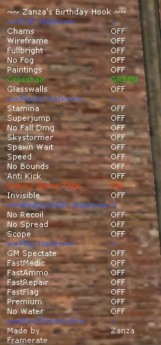 Zanzas Bday Hook Downloads › Warrock Kategorie: Warrock Entwickler: Zanza Hochgeladen von: KN4CK3R Hinzugefügt am: So 22. Mär 2009, 19:09 System: Windows Datei nicht verfügbar. Datei nicht verfügbar. Beschreibung Bei Problemen mit einem Hack hilftein Blick in die FAQ! Features? -> Screenshot