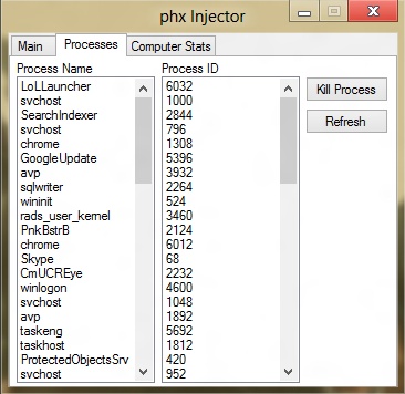 phx Injector v1.2 Downloads › Other FPS Games Category: Other FPS Games Developer: phx Uploaded by: KN4CK3R Uploaded at: Fri 15. Jun 2012, 01:44 System: Windows Download (39.47 KB) VirusTotal Result: 25/43 Download (39.47 KB) Description Problems or Questions regarding the hack?Take a look at our FAQ v1.2=====================================================================================- Fixed a problem that I had to all of the injectors' versions. That's why I asked to remove all of them, they won't work.v1.1:=====================================================================================- Welcome message (Idea by RazerGaming1337)- Added TabPages- Added Computer Stats- Added a Refresh button to Process List- Moved Process List form to a new TabPage- Very few changes with the designv1.0 (UPDATED):=====================================================================================- Created new designv1.0:=====================================================================================- Released the program Download phx Injector v1.2