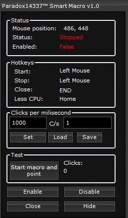 Paradox14337 Smart Macro v1.0 Downloads › Other FPS Games › Alliance of Valiant Arms Kategorie: Alliance of Valiant Arms Entwickler: Hochgeladen von: KN4CK3R Hinzugefügt am: Mi 21. Aug 2013, 15:08 System: Windows Download (51.96 KB) VirusTotal Ergebnis: 0/45 Download (51.96 KB) Beschreibung Bei Problemen mit einem Hack hilftein Blick in die FAQ! [youtube]XDEr0DJrxYs[/youtube]Instructions: 1. Run as Admin 2. In the Clicks per milisecond, enter your desired amount 3. Click Set 4. Click Enable 5. Click "Left" mouse key to start the macro (Lowers your recoil) Credits: Me songaa22 - For making the video as proof. Download Paradox14337 Smart Macro v1.0