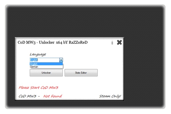 CoD MW3 - Mega Unlocker [1.9.433] Downloads › Call of Duty Series › Call of Duty: Modern Warfare 3 Kategorie: Call of Duty: Modern Warfare 3 Entwickler: RaZZoReD Hochgeladen von: Riggo95 Hinzugefügt am: Mo 25. Jun 2012, 01:16 System: Windows Download (1.06 MB) VirusTotal Ergebnis: 1/42 Download (1.06 MB) Beschreibung Bei Problemen mit einem Hack hilftein Blick in die FAQ! Status:Updated [1.9.433]Tool Version: Updated #1.22##########----##########1. Start Call of Duty: Modern Warfare 3 Multiplayer2. Press Play (in Game)3. Start & Use the Unlocker- Have Fun Download CoD MW3 - Mega Unlocker [1.9.433]