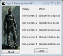 This is for the patched 1.2.1 version! Using this Trainer ------------------ Launch the trainer first, then launch the Game and then Press F1 at the Main Menu. Listen for "Activated" Press desired option key Options ------- Numpad 1: Health- Improved! Nothing can kill you! Numpad 2: Power- Your suit