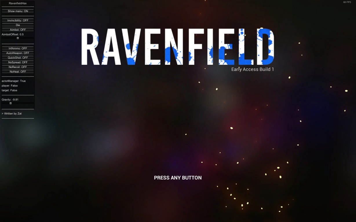 Ravenfield Hax Downloads › Other FPS Games Kategorie: Other FPS Games Entwickler: Zat Hochgeladen von: System Hinzugefügt am: Mi 31. Mai 2017, 12:03 System: Windows Download (453.56 KB) VirusTotal Ergebnis: 1/58 Download (453.56 KB) Beschreibung Bei Problemen mit einem Hack hilftein Blick in die FAQ! Features:Invincibility - God ModeDie - Die instantly (in case you're shot off-map)Aimbot - *duh*AimbotOffset - Vertical offset of the aimbot since weapons got individual fixed vertical spread (wip)Weapon-Hacks - Unlimited ammo, automatic fire-mode, high rate of fire, no spread/recoil/heatGravity - For the lulz How to use:Unzip injector, bat-file and hack-dll to a folder of your choiceStart gameWait for the main-menu to showRun Injection-Script.bat???Profit.Game may hang instantly after injection (didn't find out why yet), in this case close the game (preferrably via taskmanager) and restart from 1. Download Ravenfield Hax