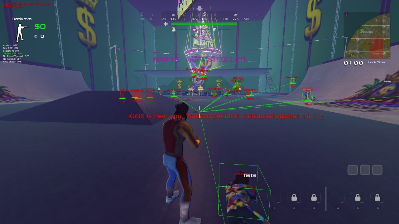 RadicalHeights Hack Downloads › Other FPS Games Kategorie: Other FPS Games Entwickler: KotiX Hochgeladen von: System Hinzugefügt am: So 27. Mai 2018, 11:08 System: Windows Download (243.50 KB) VirusTotal Ergebnis: 0/66 Download (243.50 KB) Beschreibung Bei Problemen mit einem Hack hilftein Blick in die FAQ! This Hack includes: -Aimbot (Based on Distance, has a visible check) !!Aimbot Key is "ALT"!! -3D ESP Box (Red = Not Visible, Green = Visible) -Pickup ESP -Visibility Snapline (Snapline only shows when Enemys are visible) -Skeleton (very buggy atm.) -No Recoil/Spread (doesnt work right on shotguns, idk why) -No Reload -Fast Shoot (lets you shoot faster) I hope you like it! It is still very buggy and can crash some times! How to use: -Download any injector(i recommend extreme injector) -Start the game and join a match(dont inject it in the Menu to avoid a crash) -select the dll and inject it to "RadicalHeights.exe" -Use "Delete" to open and close the Menu Download RadicalHeights Hack