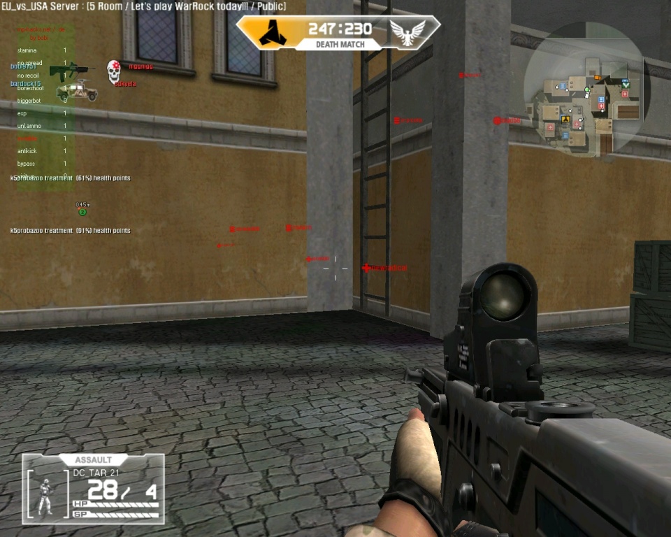 mph warrockhax v.0.3.1 Downloads › Warrock Kategorie: Warrock Entwickler: bobi Hochgeladen von: KN4CK3R Hinzugefügt am: Do 29. Mai 2008, 19:50 System: Windows Datei nicht verfügbar. Datei nicht verfügbar. Beschreibung Bei Problemen mit einem Hack hilftein Blick in die FAQ! Readme:Features:-Stamina-no spread-no recoil-boneshoot-esp-unl.ammo-antikick-bypass-invisible-triggerbothow to use:-Start Warrock-Login-Join a Server (high traffic is better)-start the hack-activate bypass-select your featuresbypass:u can get a 0min bann after 20-40minutes.when u get this:1.deactivate the bypass2.wait 30secounds3.activate the bypass again4.join the server againmenu:-Open menu: Insert/Einfg-Close menu: Del/Entf-Close hack: End