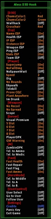 Aless D3D v9.0 Downloads › Warrock Kategorie: Warrock Entwickler: .Aless™ Hochgeladen von: KN4CK3R Hinzugefügt am: Sa 12. Feb 2011, 14:57 System: Windows Datei nicht verfügbar. Datei nicht verfügbar. Beschreibung Bei Problemen mit einem Hack hilftein Blick in die FAQ! Name: Aless D3D Public v9.0Update Date: 12.02.2011Status: UndetectedHier ist die neue Version mit den Hero Hacks. 6, 7, 8 Slot sind wieder eingebaut und Player/ZombieOPK sind enabled.Player OPK darf nicht in der Lobby auf ON stehen!Neue Funktionen kommen in der Version 9.1 / 9.2!HotKeys:Scope: Right clickSuperJump: STRGDig: AltFunktioniert auf allen Systemen!