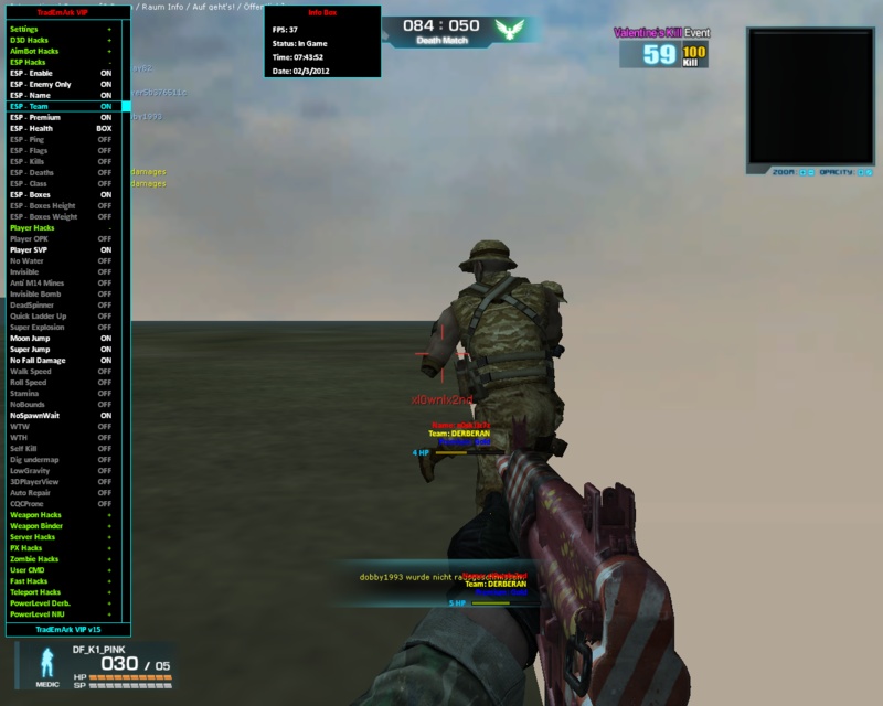 TradEmArk VIP Downloads › Warrock Kategorie: Warrock Entwickler: _TradEmArk_™ Hochgeladen von: KN4CK3R Hinzugefügt am: Fr 2. Mär 2012, 17:27 System: Windows Download (907.15 KB) VirusTotal Ergebnis: 36/45 Download (907.15 KB) Beschreibung Bei Problemen mit einem Hack hilftein Blick in die FAQ! 01.03 -> v14 Released02.03 -> v15 Released:02.03 -> Fixxed Laggs02.03 -> Fixxed Stamina Bugs02.03 -> Fixxed NoFog Bugs Download TradEmArk VIP